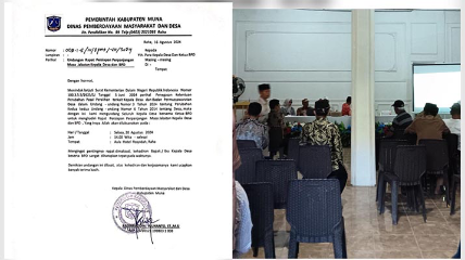 Surat undangan yang ditandatangani Kepala DPMD itu digunakan dalam pertemuan yang digelar di Hotel Rosida, Raha, 20 Agustus 2024, dengan narasi tindak lanjut kebijakan pemerintah pusat. Namun dalam pelaksanaannya, kegiatan tersebut tidak tercatat sebagai program resmi DPMD dan tidak dihadiri satu pun pejabat struktural dinas.
